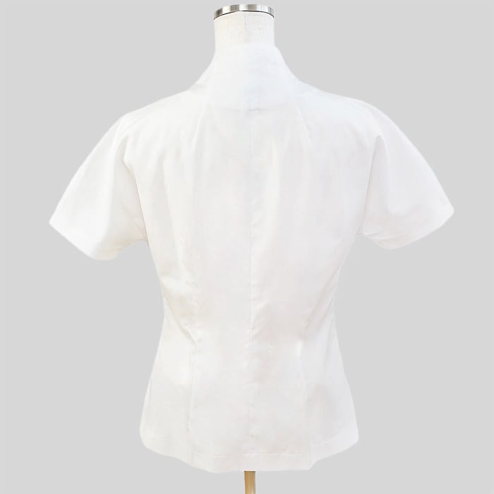 首元で交差した衿が印象的で、ネックラインをすっきりと美しく見せてくれます。