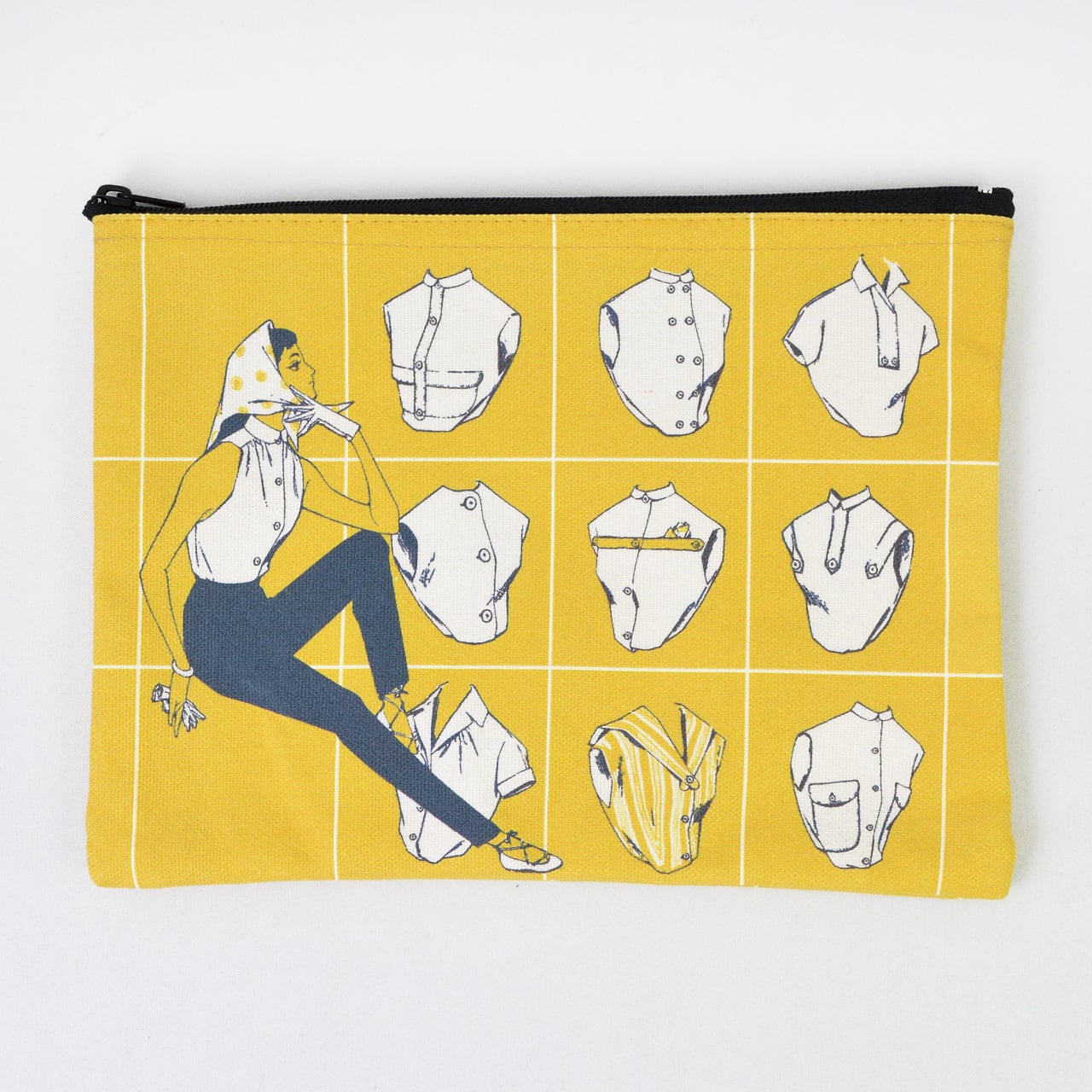 スタイリッシュなファッション画を全面にデザインしたフラットポーチ。