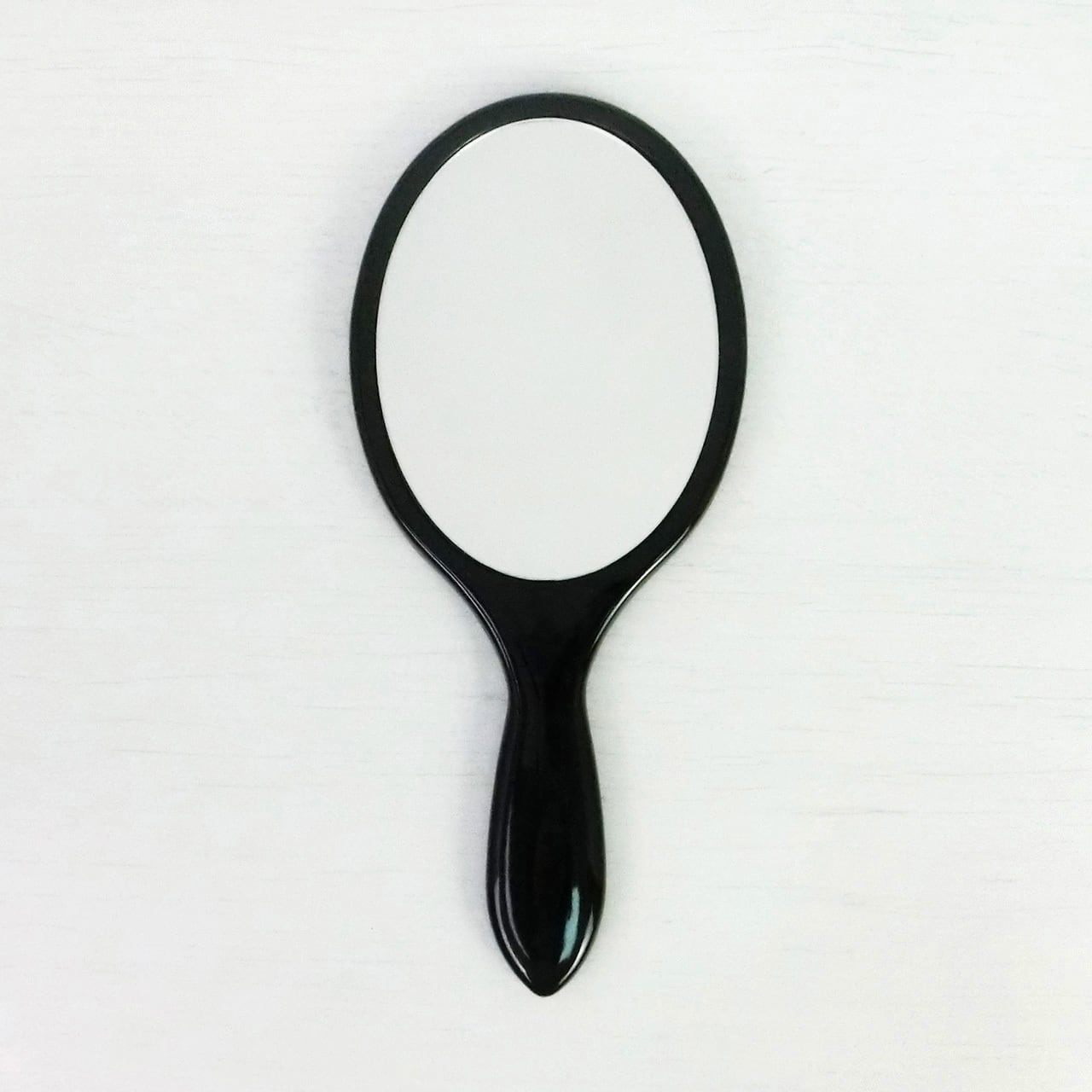 縦長のシンプルな形に黒ネコがデザインされた手鏡。レトロな雰囲気が可愛い!