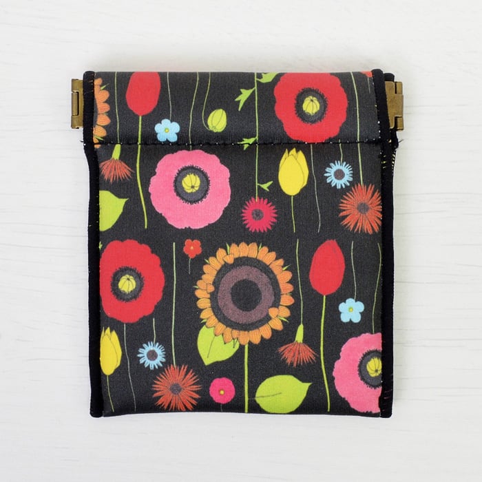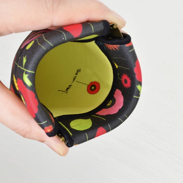 片手でパカっと開く新感覚のバネタイプのポーチ。